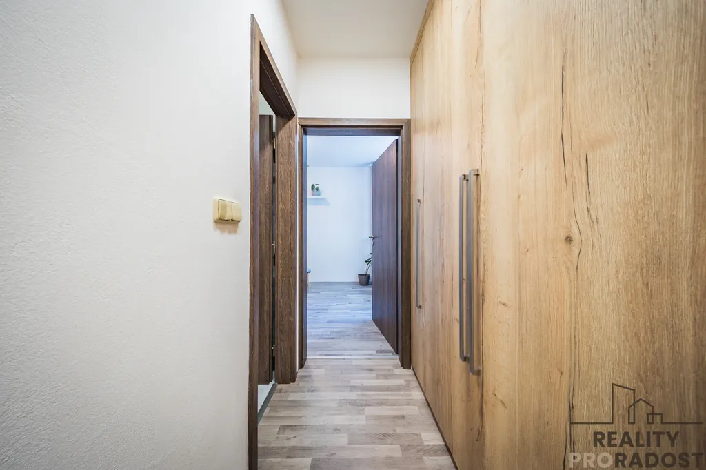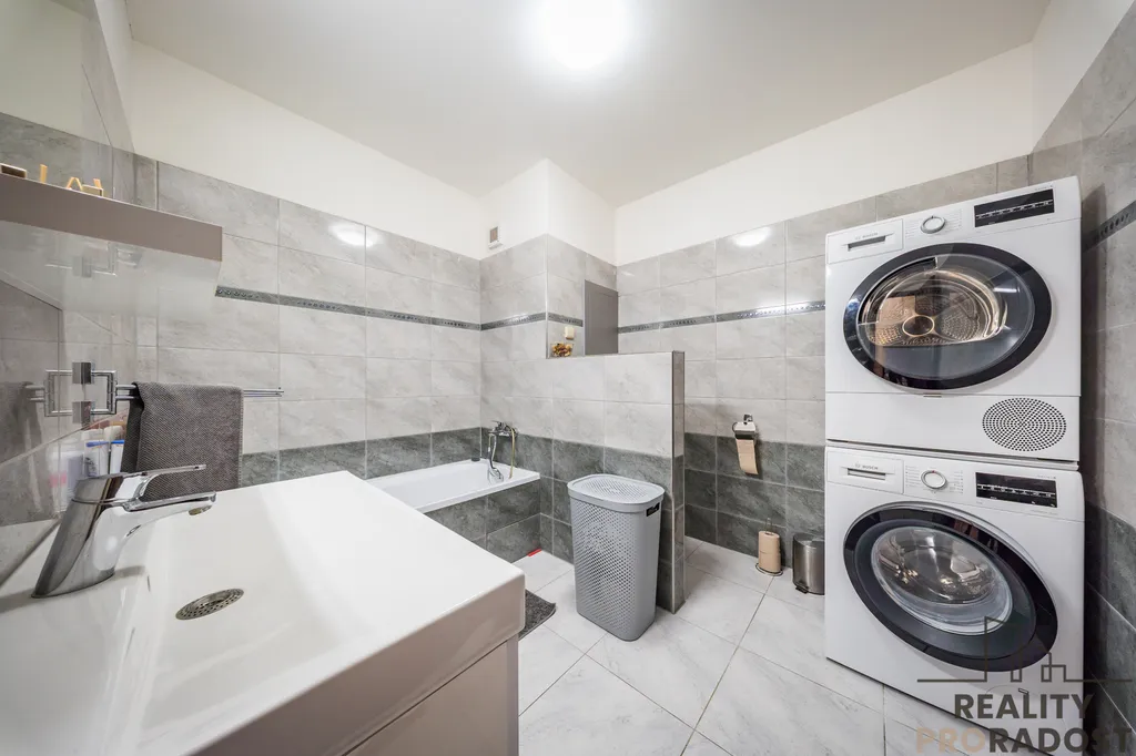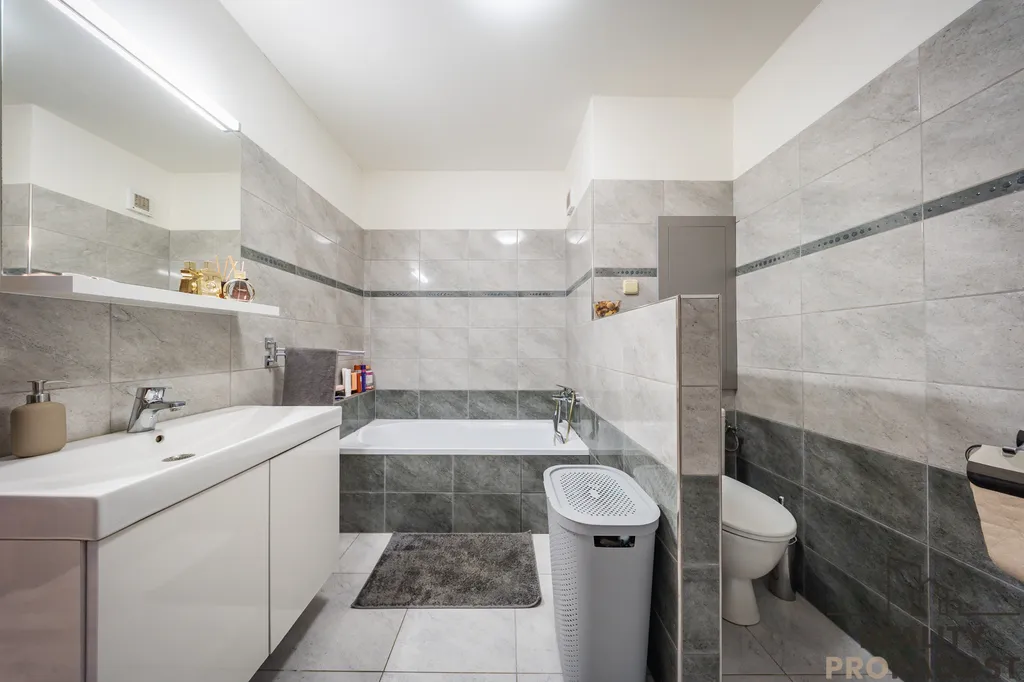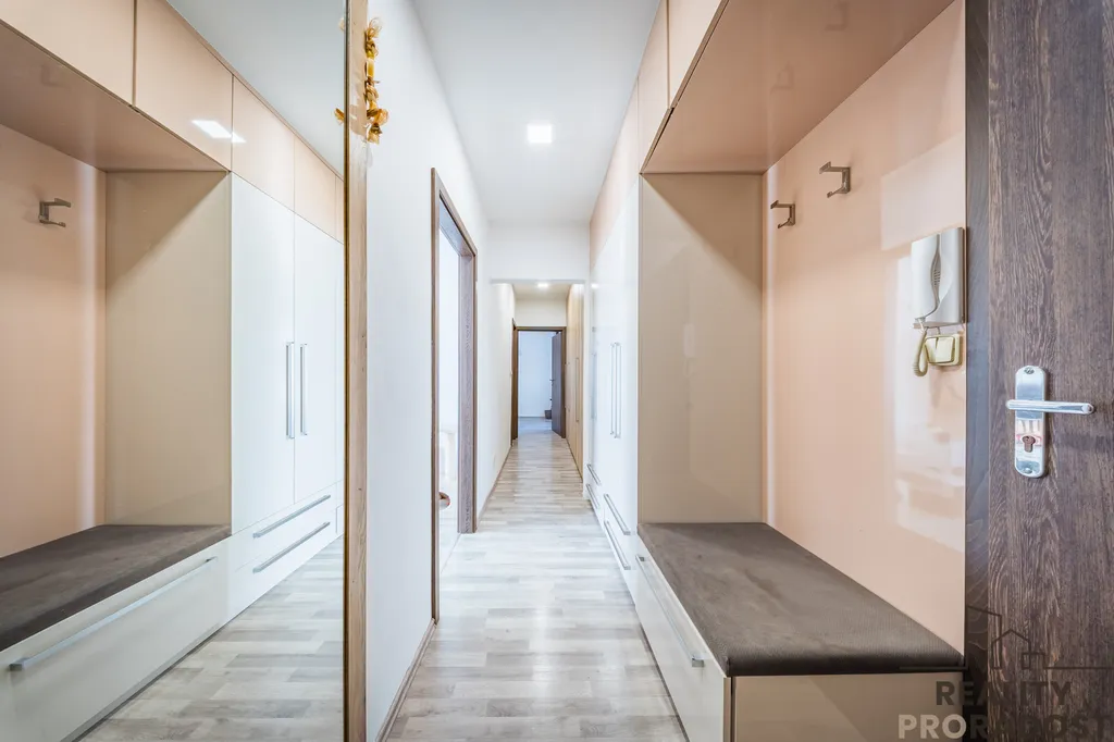 Byt prošel kompletní rekonstrukcí, moderní interiér je vybaven zabudovanou klimatizací, nové podlahy, interiérové i vstupní dveře, kuchyňská linka zahrnuje myčku, sklokeramickou desku a elektrickou troubu. Koupelna byla proměněna na novou prostornou luxusní koupelnu a centrální chodba v bytě disponuje velkými úložnými prostory.