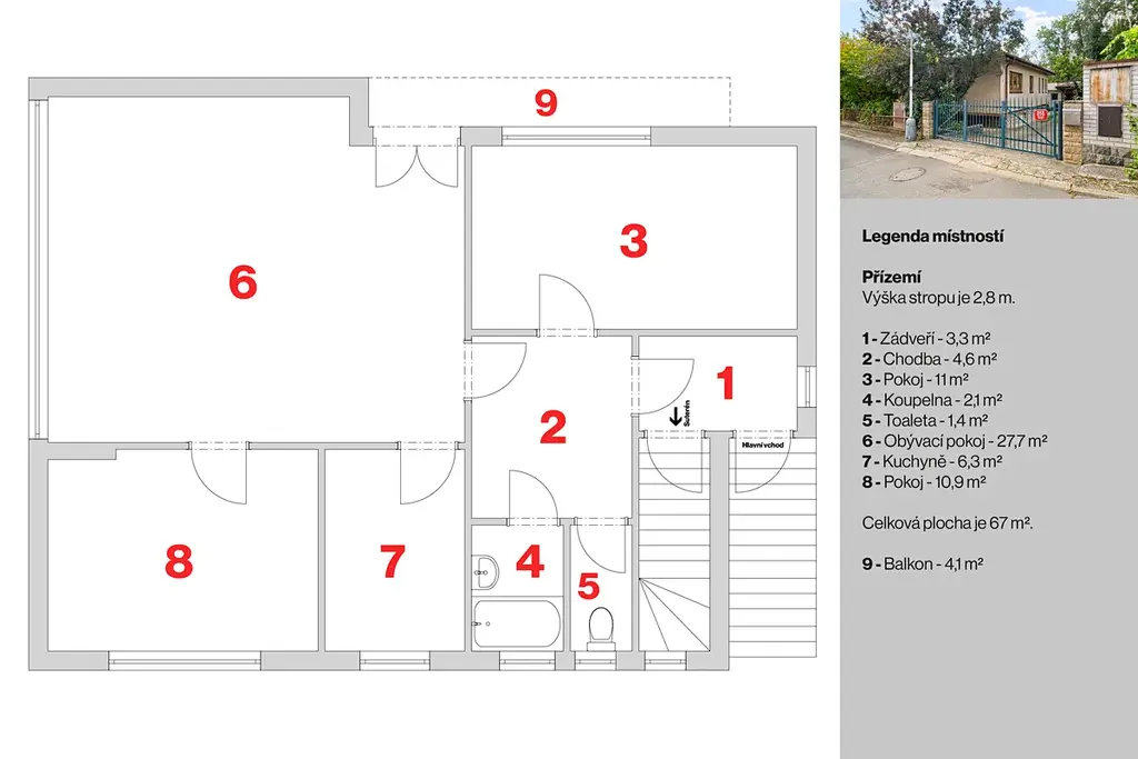 Rozlehlý pozemek a umístění domu s přístavbou na pozemku dává možnost dalšího využití, přestavby domu.