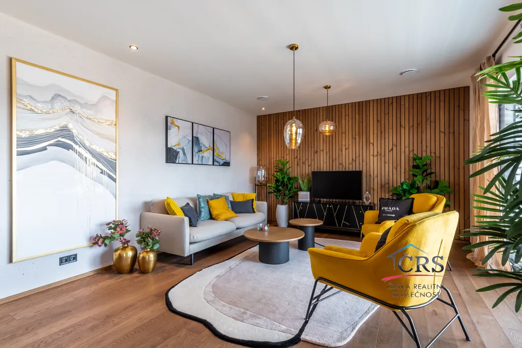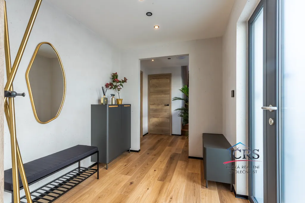 Nemovitost nabízí skutečně nadstandardní vybavení – inteligentní systém LOXONE v plné konfiguraci umožňuje ovládání domácnosti (osvětlení, vytápění, chlazení, rekuperace, stínění či zabezpečení) odkudkoliv. V interiéru jsou použity kvalitní materiály, jako jsou designové stěrky v celém domě, dřevěné podlahy a moderní koupelny včetně nábytku. Samozřejmostí jsou bezfalcové interiérové dveře o výšce 210 cm, HS portál na terasu a kompletní osvětlení v celém domě.