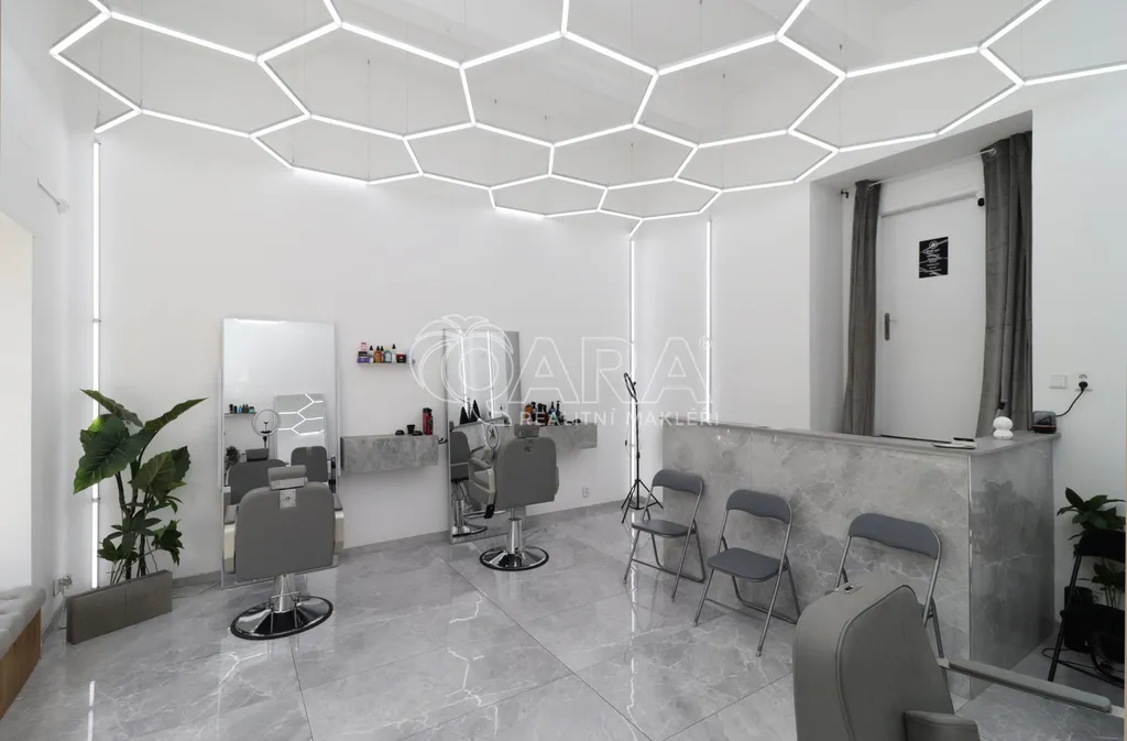 Po dohodě možné odkoupit od minulého nájemce vybavení barbershopu. Podlahy a osvětlení zůstává. Volné ihned.