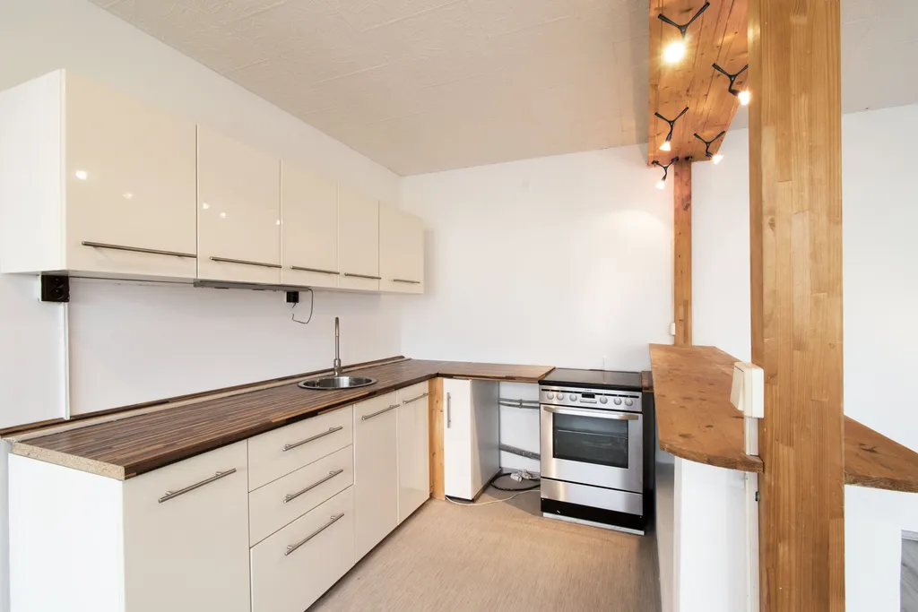Byt se nabízí částečně vybavený. Kuchyňská linka disponuje elektrickou troubou, a sporákem. Vzdušná obývací část je nezařízená. Byt se dále skládá ze dvou ložnic, které jsou nevybavené. V předsíni najdeme praktické úložné skříně. Součástí koupelny je vana a umyvadlo. Toaleta je oddělená.
