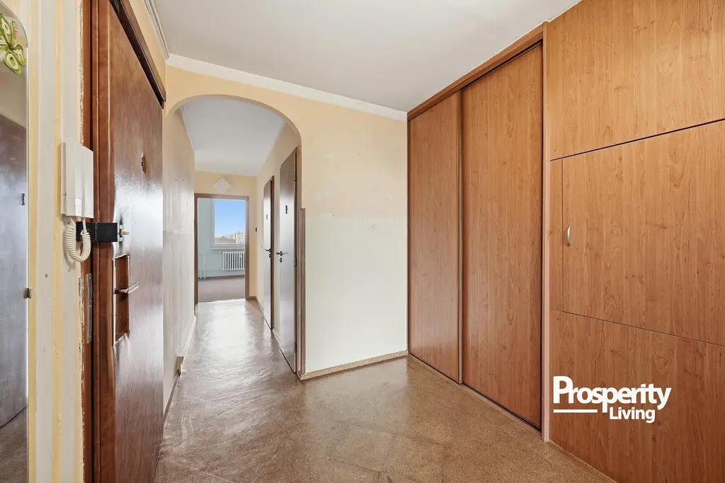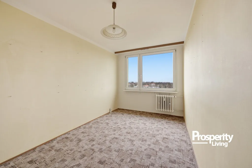 Tento byt o dispozici 3+1 a výměře 81 m² se nachází v 8. nadzemním podlaží panelového domu v ulici Toruňská. Díky vyššímu patru působí světlým a otevřeným dojmem, nabízí soukromí a příjemný odstup od ruchu města.