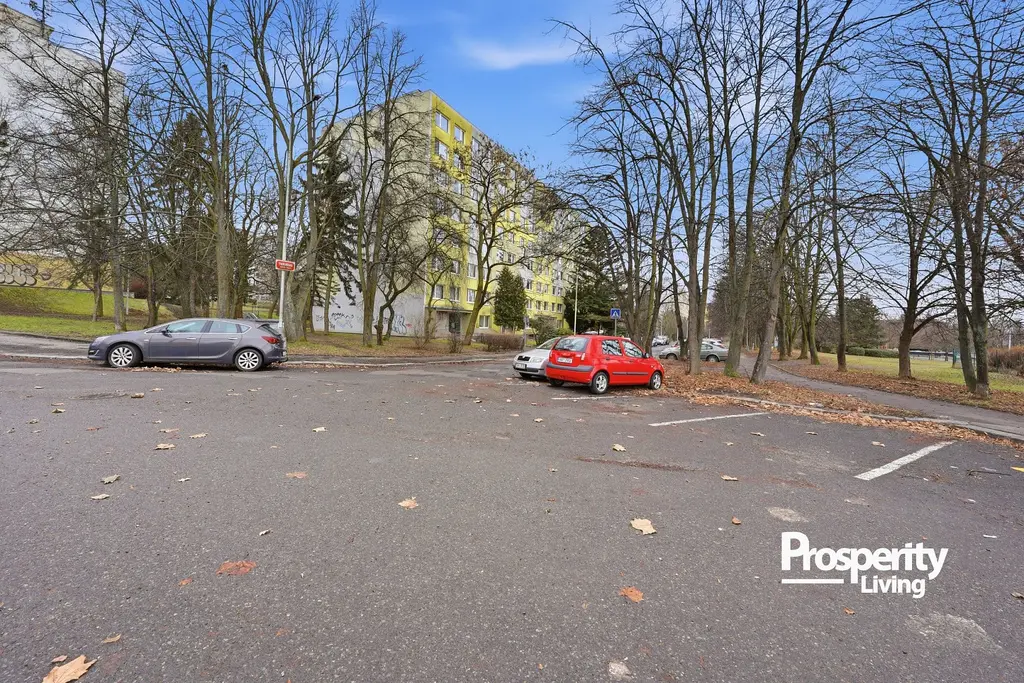 Velkou výhodou je parkování v bezprostřední blízkosti domu, dostatek zeleně v okolí a několik dětských hřišť, které ocení především rodiny s dětmi.