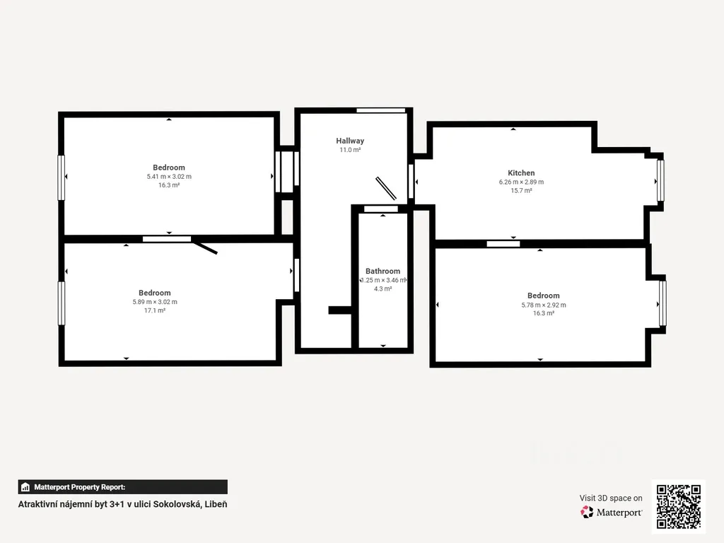 - Plocha balkonu cca 3 m², výhled do klidného vnitrobloku